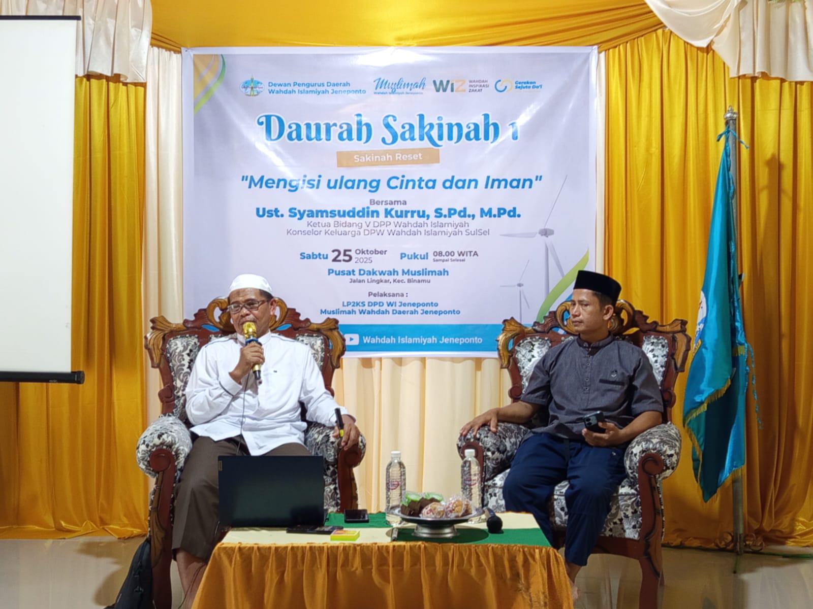 JENEPONTO, MATASULSEL – Dewan Pengurus Daerah Wahdah Islamiyah Jeneponto bersama LP2KS dan Muslimah WI Jeneponto mengadakan kegiatan Daurah Sakinah 1 yang berlangsung di Gedung Pusat Dakwah Muslimah, Jalan Lingkar Kelurahan Empoang, Kecamatan Binamu, Sabtu (25/10/2025).