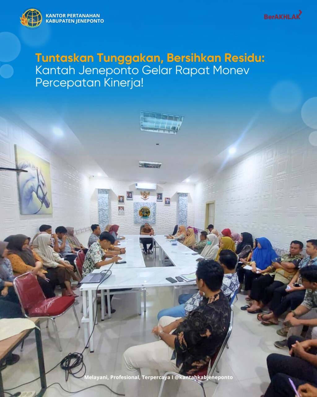 Kantor Pertanahan Jeneponto Gelar Rapat Monitoring dan Evaluasi Penyelesaian Residu Kegiatan PSN