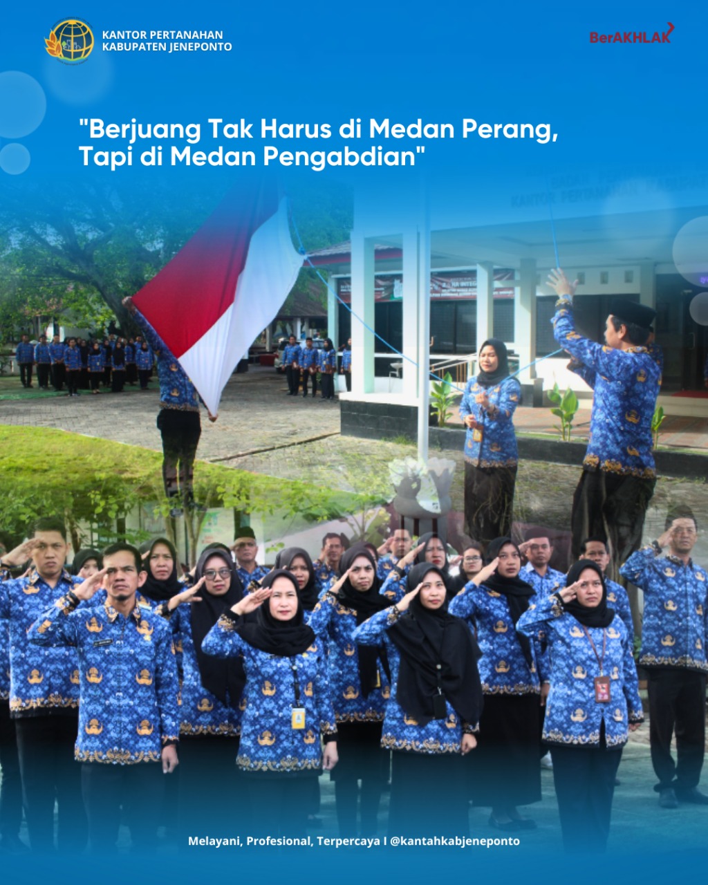 JENEPONTO, MATASULSEL – Dengan semangat yang menggebu, Kantor Pertanahan Kabupaten Jeneponto mengadakan upacara peringatan Hari Pahlawan ke-80 pada Senin, 10 November 2025. Upacara ini berlangsung di halaman kantor dan dihadiri oleh seluruh Aparatur Sipil Negara (ASN) dari Kantor Pertanahan, yang menunjukkan rasa hormat dan penghargaan yang tinggi terhadap jasa para pahlawan bangsa.