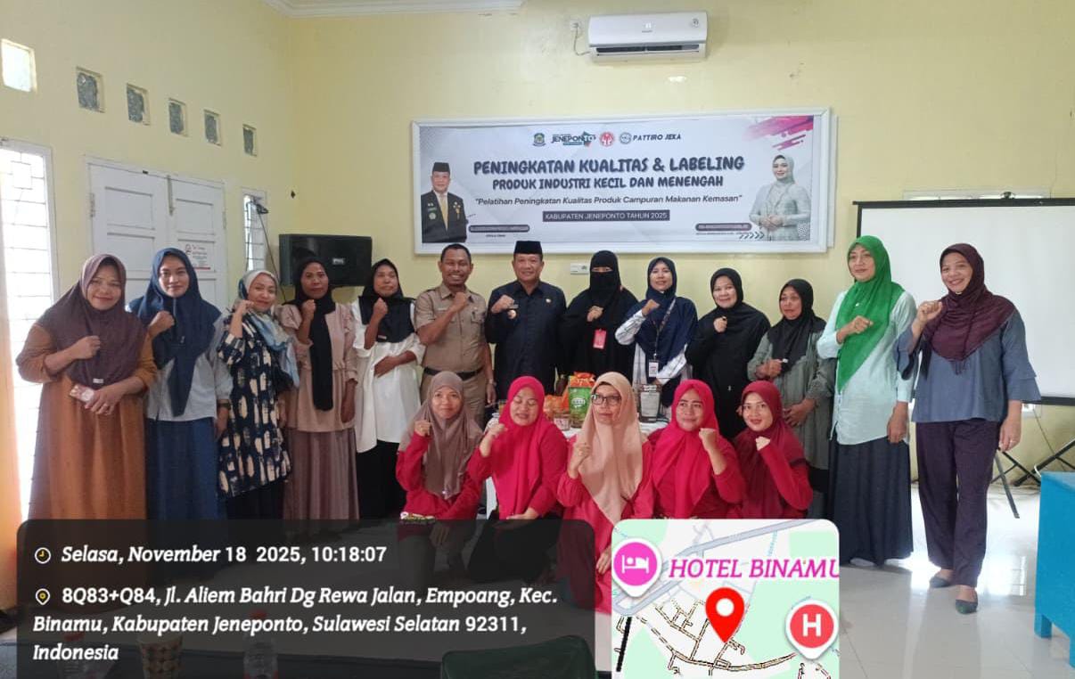 JENEPONTO, MATASULSEL – Upaya meningkatkan kualitas dan daya saing produk Industri Kecil dan Menengah (IKM), kembali dilakukan melalui kegiatan Pelatihan Peningkatan Kualitas Produk Campuran Makanan Kemasan, Selasa (18/11/2025).