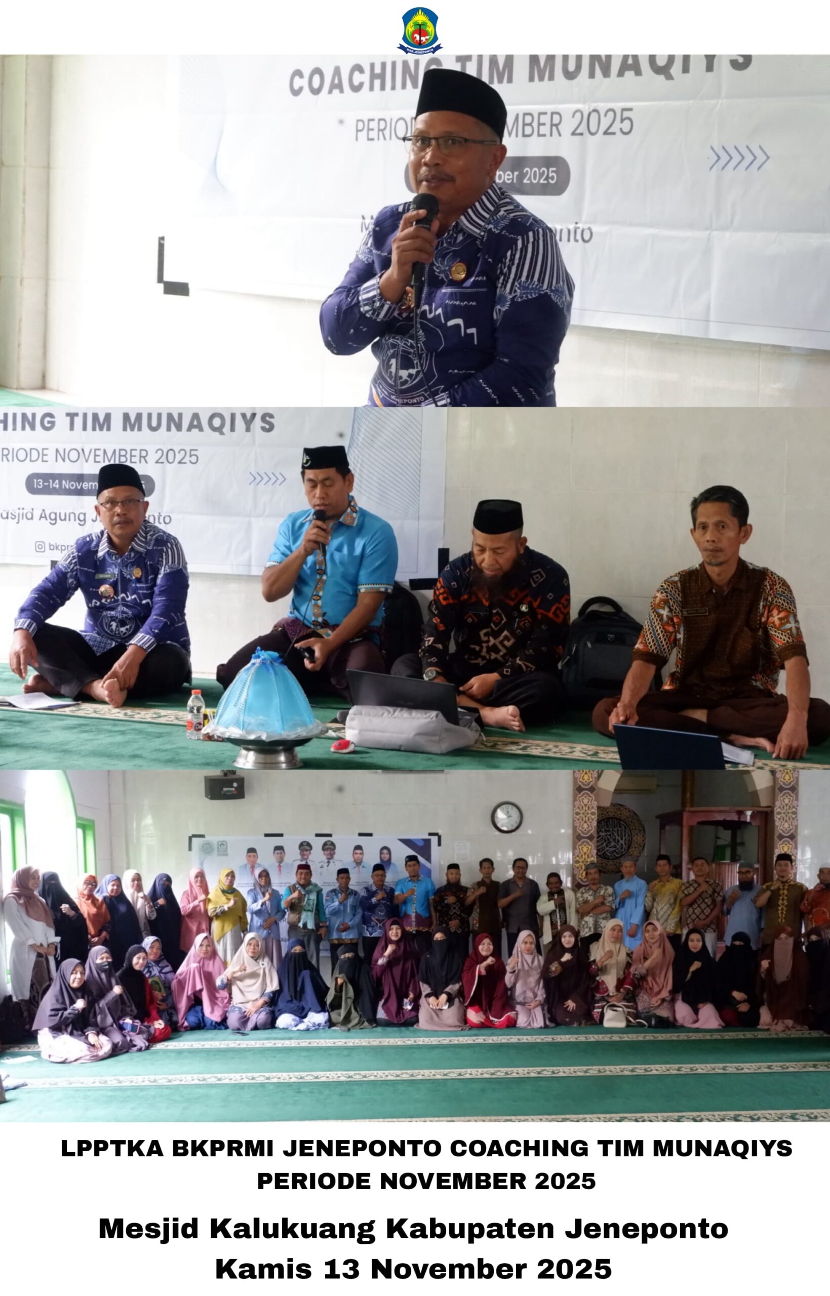 Lembaga Pembinaan dan Pengembangan Taman Kanak-kanak Al-Qur’an (LPPTKA) DPD BKPRMI Kabupaten Jeneponto kembali menggelar kegiatan Coaching Tim Munaqisy periode November 2025 sebagai persiapan menghadapi Munaqasyah Santri ke-52. Kegiatan berlangsung selama dua hari, Kamis–Jumat (13–14 November 2025).