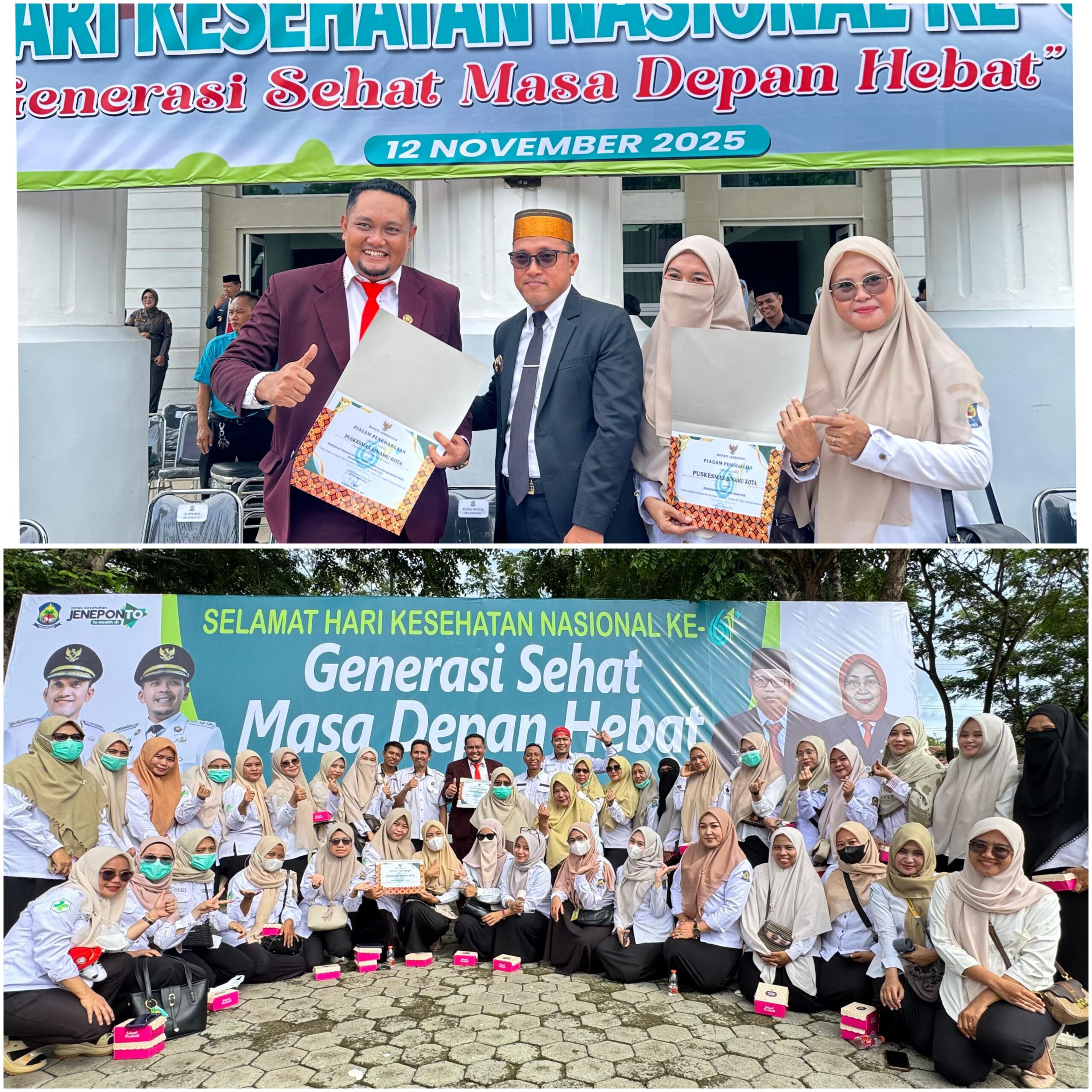 Penghargaan tersebut diserahkan langsung oleh Bupati Jeneponto, didampingi Kepala Dinas Kesehatan Kabupaten Jeneponto, pada upacara puncak peringatan HKN yang berlangsung di halaman Kantor Bupati Jeneponto.