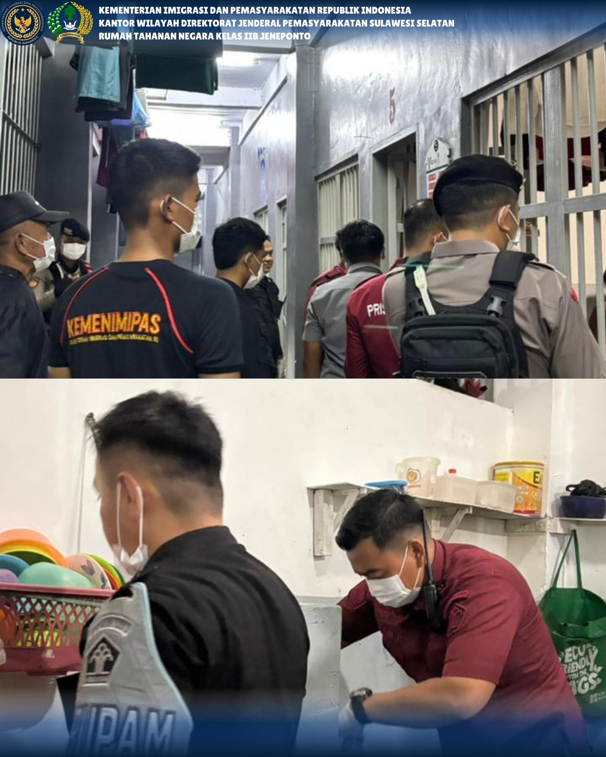 Sidak yang dipimpin oleh Kepala Rutan Kelas IIB Jeneponto, Adam Ridwansyah, ini melibatkan jajaran pengamanan rutan serta personel dari Polres Jeneponto. Tim melakukan pemeriksaan menyeluruh terhadap kamar hunian, barang bawaan WBP, serta area-area rawan yang berpotensi disalahgunakan.