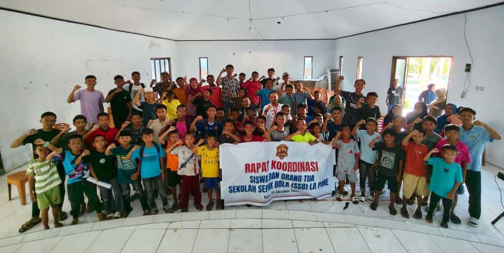 JENEPONTO, MATASULSEL – Pengurus Sekolah Sepak Bola (SSB) LA PORE melaksanakan Rapat Koordinasi dengan orang tua dan siswa, dihadiri oleh sekitar 150 siswa dari berbagai kategori umur, bertempat di Aula Kantor Camat Tamalatea, Rabu (15/10/2025).